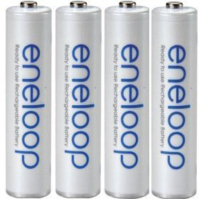 - Sanyo Eneloop 4 Pack AA NiMH Pre-Charged Rechargeable Batteries